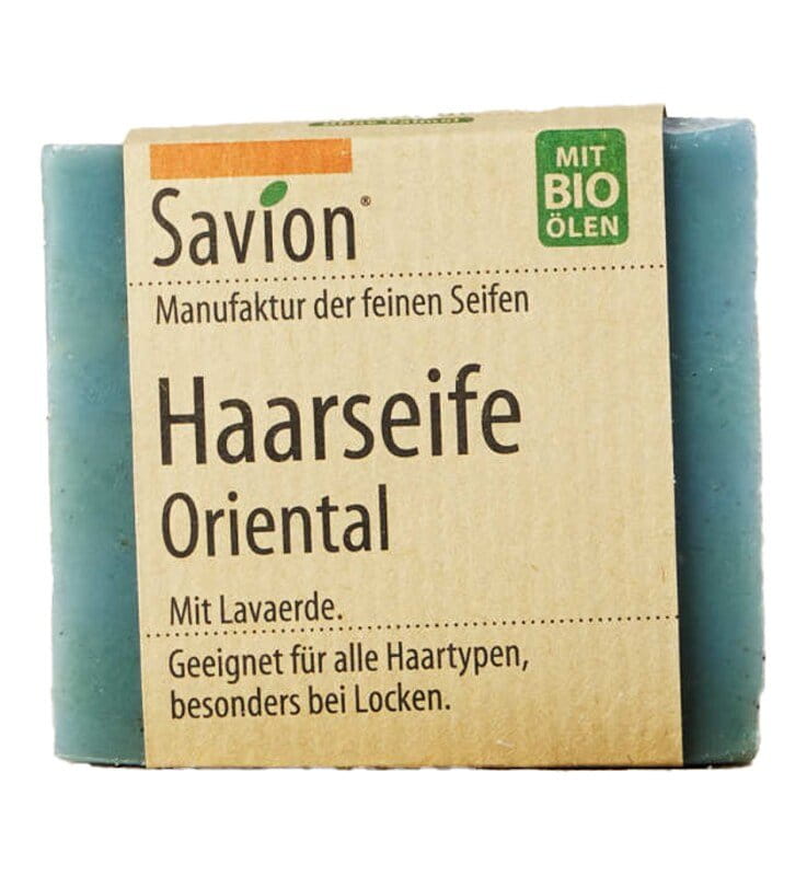 Haarseife Oriental mit zartem Duft nach Lavendel und einem Hauch von Patchouli. Reinigt das Haar dank Lavaerde. Rückfettend durch Sheabutter und Weizenkeimöl. Vegan.