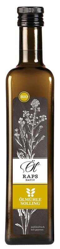 Aus den ölhaltigen Samen des regional und ökologisch angebauten 00-Raps (erucasäurefrei) wird im ersten Pressgang bei Presstemperaturen unter 40°C Kaltpressung ein sehr wertvolles Pflanzenöl gewonnen, bei dem auch die sekundären Pflanzeninhaltsstoffe wie zum Beispiel das zu den Carotinoiden zählende Lycopin erhalten bleiben.